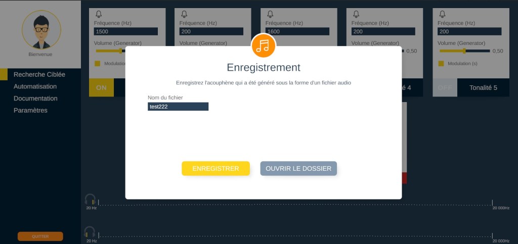 This software was made in collaboration with an ERT and a neurologist. It allow the user to generate multiple tone sound wave and modify them in order to create a << tinnitus- like » sound.